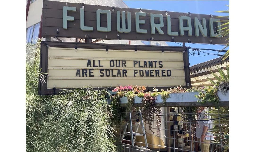 Opened in 1947, Flowerland is a venerated nursery in Albany, CA. The current owner has preserved its original sign (as well as other features) and has combined that aesthetic with her singular vision for the space. It is a destination that many in the Bay Area know and adore.